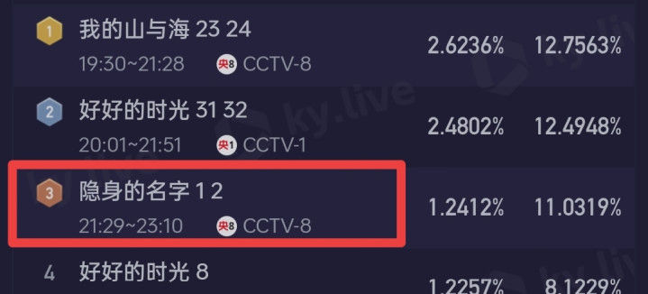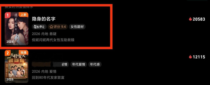 这是3月18日,央八晚间九点半次黄金档,刚开播的32集悬疑剧《隐身的名字》起头。
